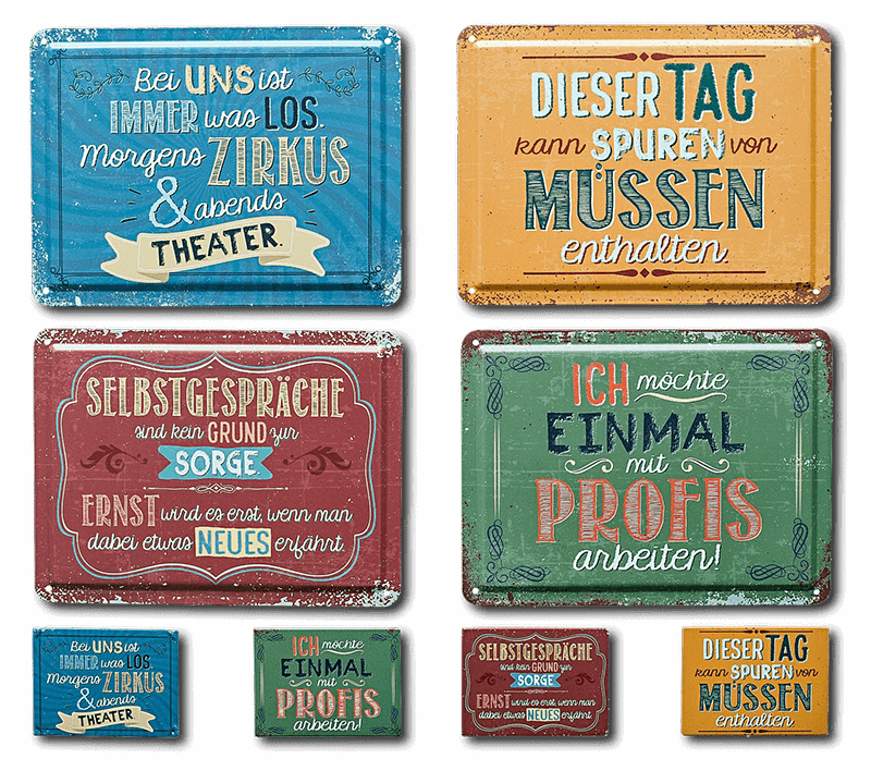 BLECHSCHILDER & MAGNETE: Dekorative Motive auf hochwertigen Blechschildern und Magneten | Verschiedene Formate | 4-Farbdruck | Gerollte Kanten | Schild-Lochung für einfache Aufhängung | Auch als Set möglich